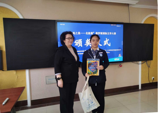 Entrusted by the Krasnoyarsk municipal government, Ilyina Nina presented honorary certificates and awards to students and instructors from CFLS who won the short story category of the "Star of the Arctic—Polar Bear" Russian International Literary Contest.